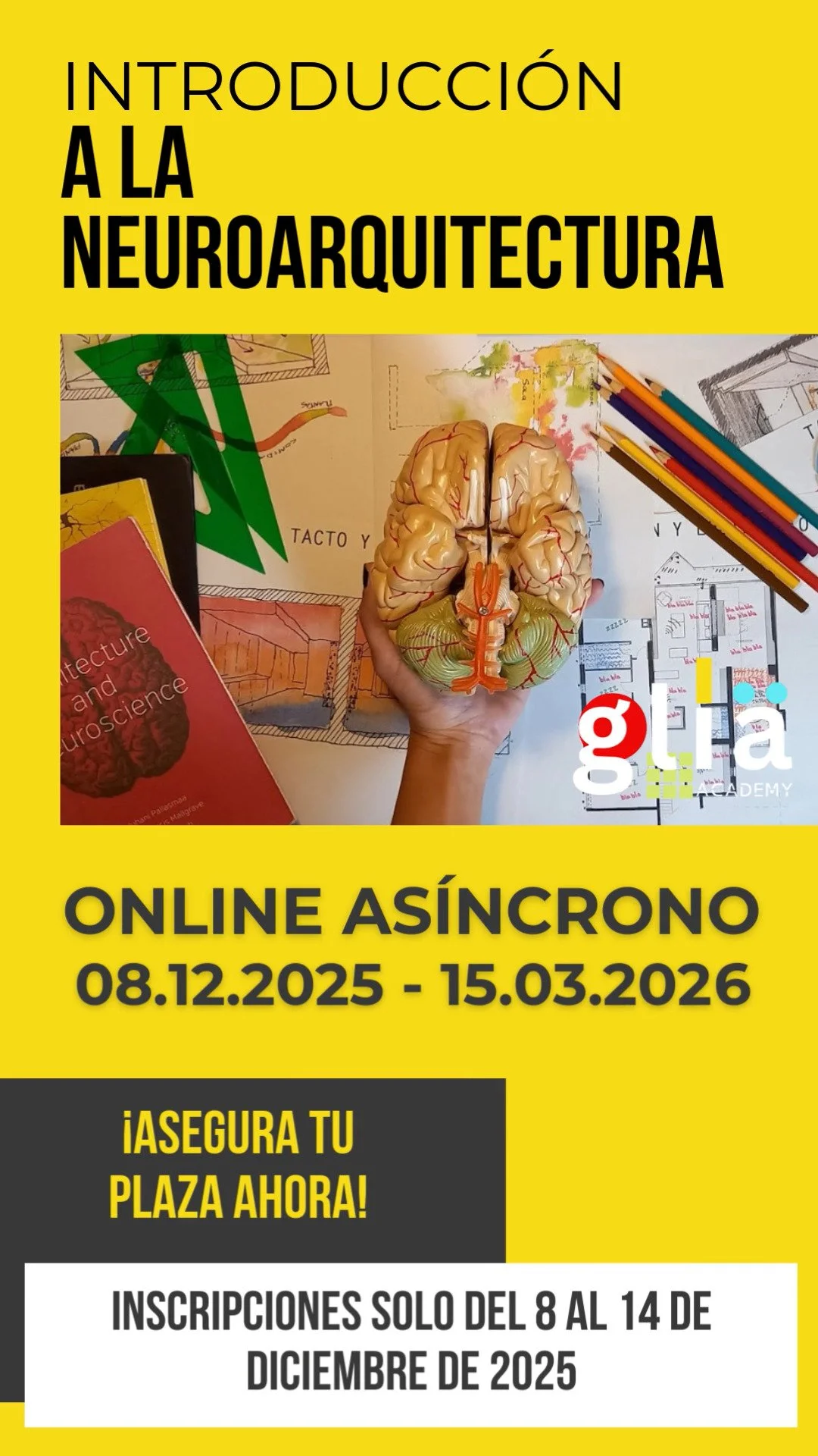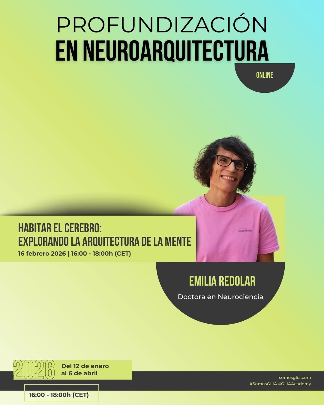 En GLÍA ACADEMY hemos creado un programa de formación específica en neuroarquitectura y neuropsicología del espacio para ampliar tus conocimientos con herramientas prácticas y evidencia científica, que aplicarás inmediatamente a tus proyectos de arquitectura e interiorismo, a tu centro escolar, lugar de trabajo o espacio sanitario, a tu vivienda o cualquier entorno tanto interior como exterior.